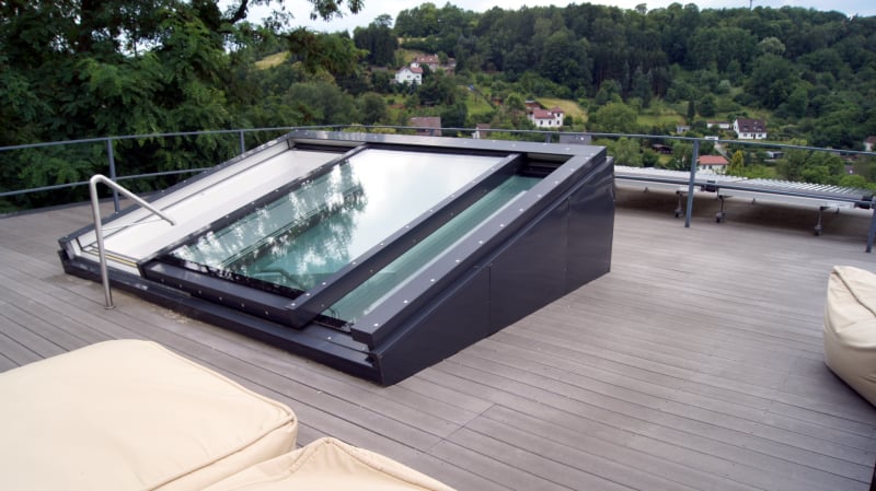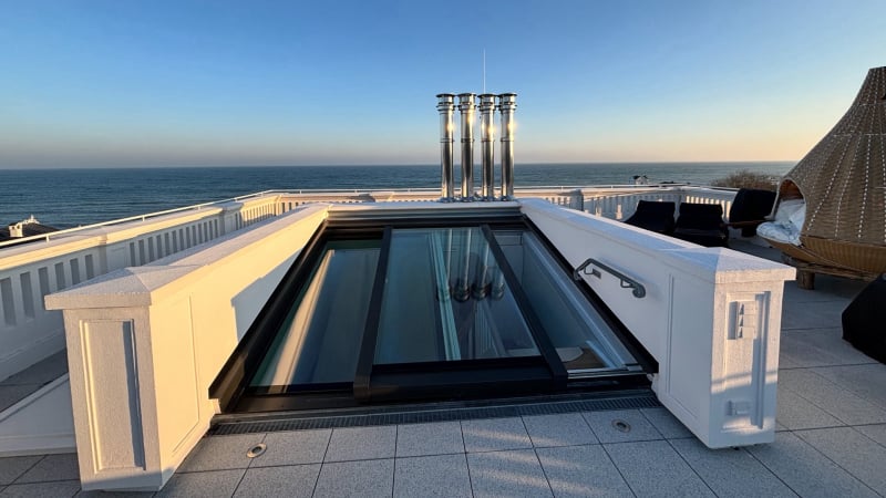 Alle Modelle sind auch als Dachschiebetür erhältlich – ideal als komfortabler Austritt auf die Dachterrasse oder den Balkon. Die bodenbündige Ausführung sorgt für einen besonders komfortablen Dachausstieg und einen nahtlosen Übergang nach draußen.